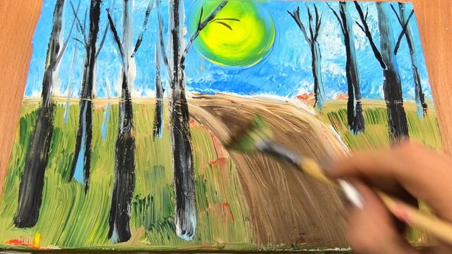 РАЗВИВАШКА для детей и родителей! Пейзаж "Осенние березки" // Акриловая живопись!