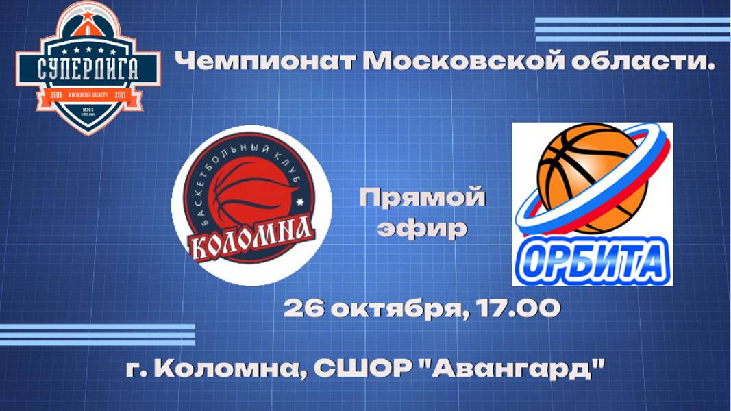 Чемпионат Московской области по баскетболу среди мужских команд супер-лиги в сезоне 2024-2025 года. Коломна, СШОР "Авангард" 17.00 26.10.24