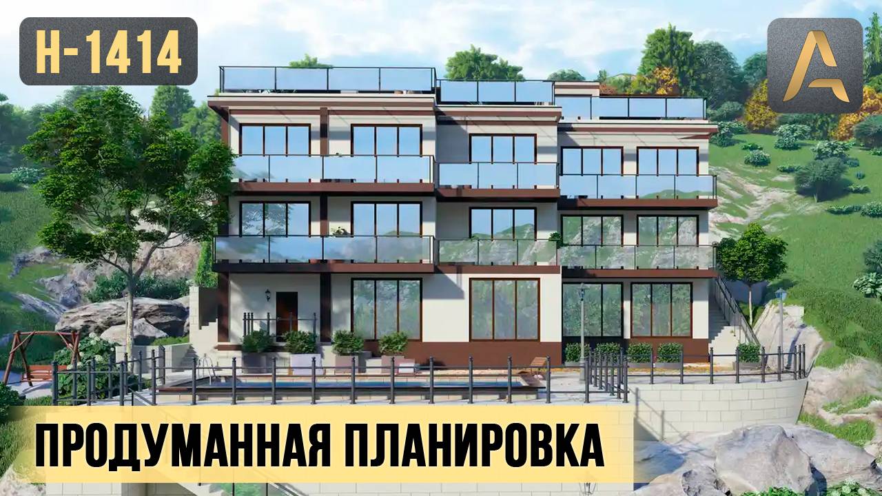 Прекрасный дом для ландшафтов с большим перепадом высот. Проект дома с цокольным этажом и балконами