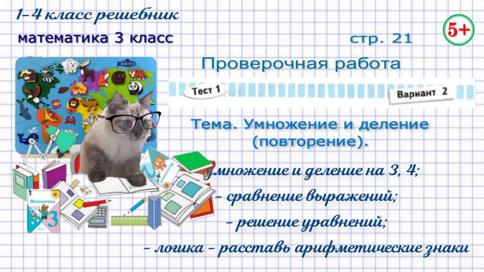 Таблица умножения на 3, 4. Сравнение выражений, уравнения, порядок действий, логика. Проверочная работа стр. 21 тест 1 вариант 2 математика 3 класс Волкова ФГОС 2023 г. Если нашли ошибку, напишите, пожалуйста, в комментариях. Сайт с текстовым содержанием: https://dzen.ru/id/650204661aba9b0ba4b2643e #обучениематематике#математика3класспроверочнаяработастр21#проверочнаяработастр21тест1вариант2#таблицаумножения#таблицаумноженияна3на4#уравнения#математика3классФГОС#математика3класспроверочныеработыВолкова2023#длядетей#решебникматематика3класс#гдзматематика3класс#начальныеклассы#1-4классрешебник+