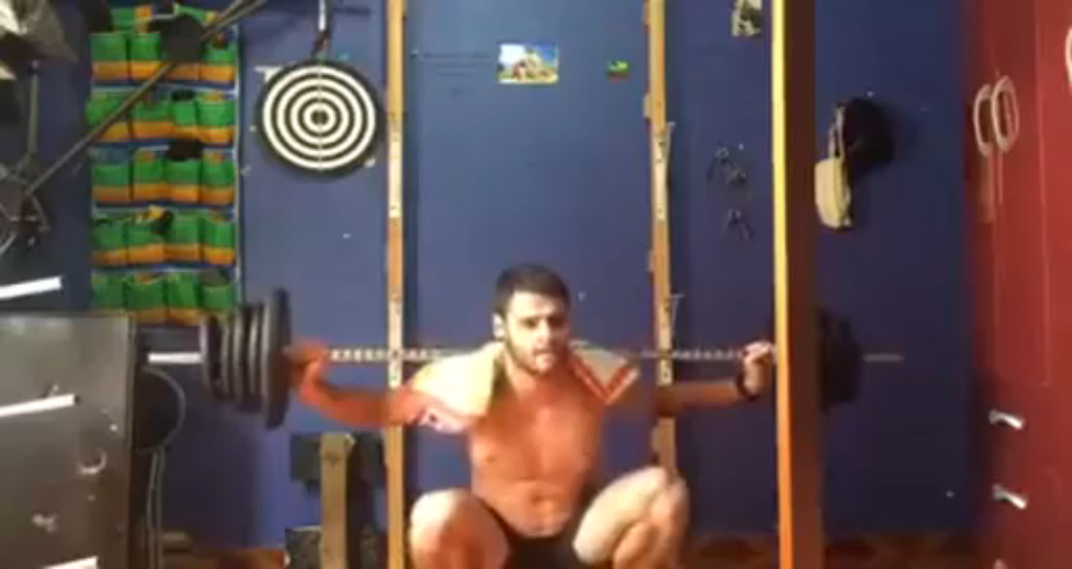 Приседание со штангой не удалось - пришлось звать маму на помощь.