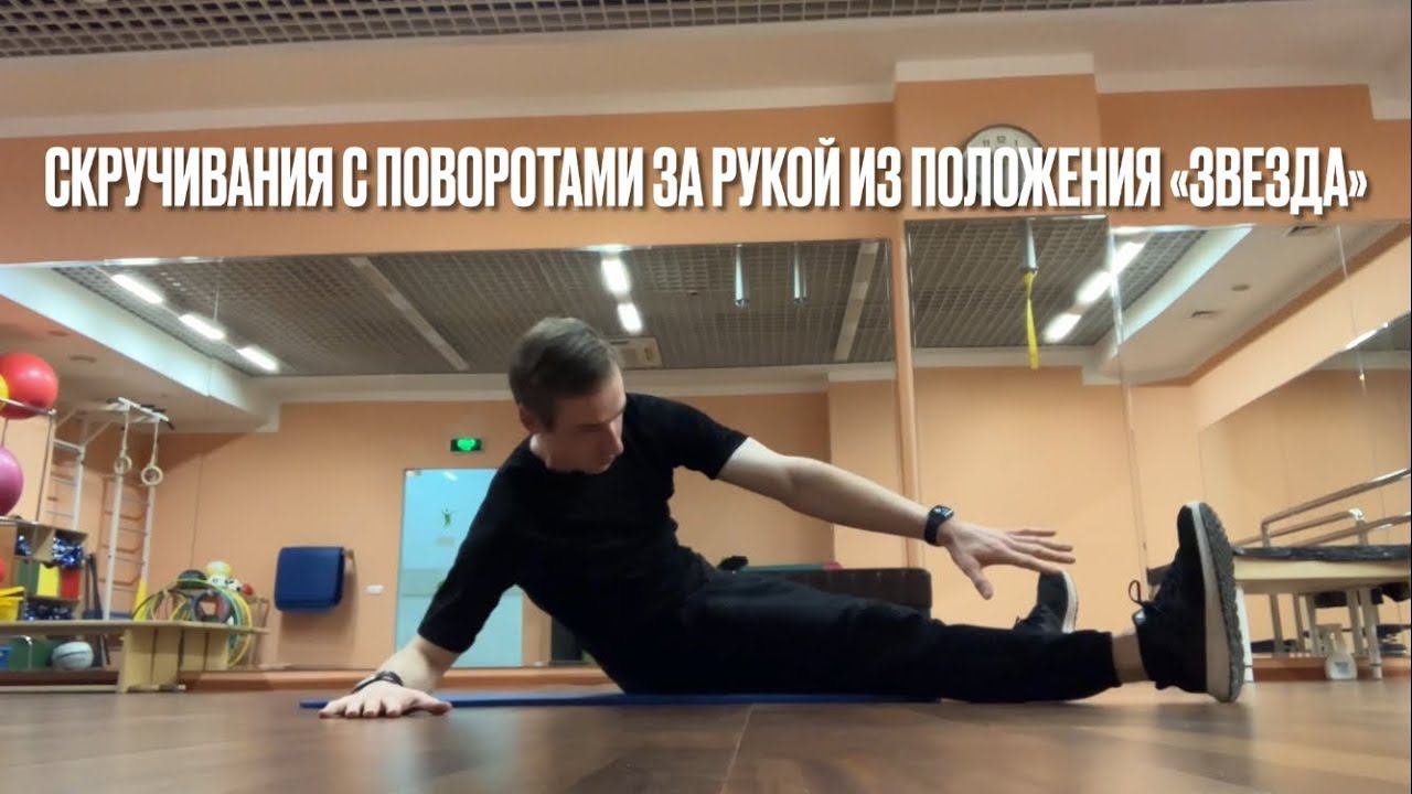 Скручивания с поворотом за рукой из положения «звезда»