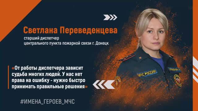 Рубрика #ИМЕНА_ГЕРОЕВ_МЧС о бесстрашных, отважных и всегда готовых прийти на помощь. Светлана Переведенцева в структуре МЧС уже почти 10 лет. За плечами опыт работы в пожарной части Пролетарского района Донецка, а с мая 2022 года она – старший диспетчер городского центрального пункта пожарной связи. В должность вступила в самый непростой для Донецка период. Тогда линия «101» не умолкала: город был «усыпан» противопехотными минами-«лепестками», а массированные обстрелы велись практически круглосуточно. Именно от скорости и правильно принятого Светланой решения зависит чья-то жизнь. Зима 2022 года. 8 утра – время, когда в диспетчерской сдают и принимают смену. В пяти метрах от окон отряда разорвался снаряд. Светлана с коллегами быстро выбежали в коридор. К счастью, от разлета осколков никто не пострадал. Несмотря на всю сложность работы в условиях боевых действий, себя вне МЧС Светлана уже не представляет: «Чувствую себя на нужном месте. Это уже моя жизнь!».
