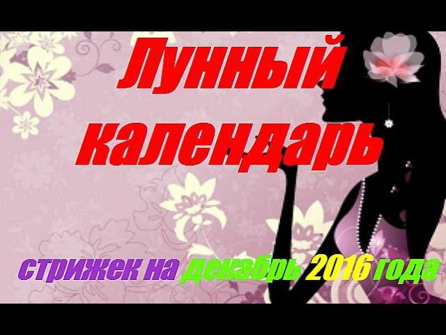 Лунный календарь стрижек на декабрь 2016 года Для просмотра календаря используйте тайм код , расположенный ниже. 0:47 - 1-2 декабря 2:02 - 3-4 декабря 3:18 - 5-7 декабря 4:34 - 8-10 декабря 6:19 - 11-13 декабря 7:45 - 14-16 декабря 9:11 - 17- 19 декабря 10:38 - 20- 22 декабря 12:24 - 23- 26 декабря 14:26 - 27- 31 декабря ********************************************************************* Работайте в YouTube правильно. «ТОП-30 ошибок на YouTube»: http://bit.ly/2c3XGoE ****************************************************************** Как заработать на просмотрах видео на YouTube? Легко! Партнёрская программа VSP Group предоставляет возможность монетизации вашего канала и получения "Премиум аккаунта" на платформе YouTube. Заполните заявку тут: http://bit.ly/2c4QqL9 (миним. требования 50 подписчиков и 3000 просмотров на вашем канале) **************************************************************** Плейлисты: Женские гороскопы: https://www.youtube.com/playlist?list=PLpHsJPO5WIlQln-2FjC_2Aj4nI__TZ_63 Гороскоп по годам: https://www.youtube.com/playlist?list=PLpHsJPO5WIlQakz93H0CzlefqGv4_t7E2 Гороскоп на неделю: https://www.youtube.com/playlist?list=PLpHsJPO5WIlQZmOneu3gk5hKTQ9Tf1cZZ Гороскоп по месяцам: https://www.youtube.com/playlist?list=PLpHsJPO5WIlSblucdfwYPRDl46lAirl_l ********************************************************************* Подписывайтесь на каналы: https://www.youtube.com/channel/UCIgIkHLcs3RvUTnZufSg3XA https://www.youtube.com/channel/UCSLwSvGEbGetmQNEEcvNP7A