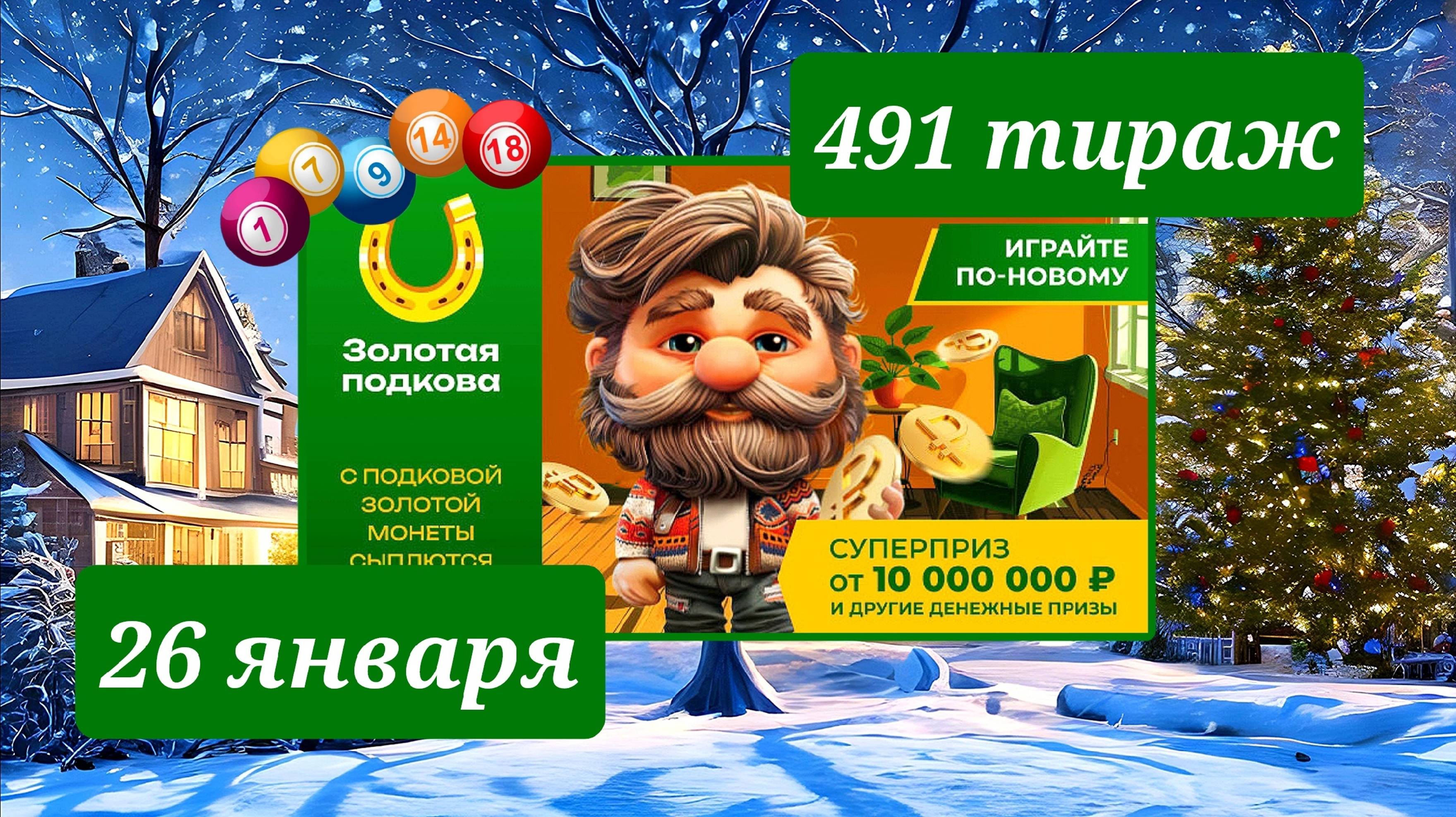 ЗОЛОТАЯ ПОДКОВА 491 тираж 26 января. Проверить билет под музыку с цифрами.