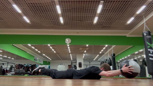 Супермэн (полная гиперэкстензия на полу) с набивным мячом, гантелями / Superman
