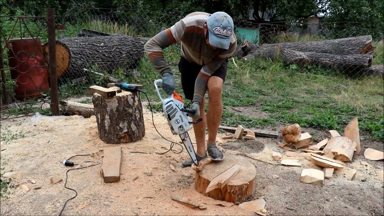 Заволжец за пять минут выпиливает бензопилой ложку