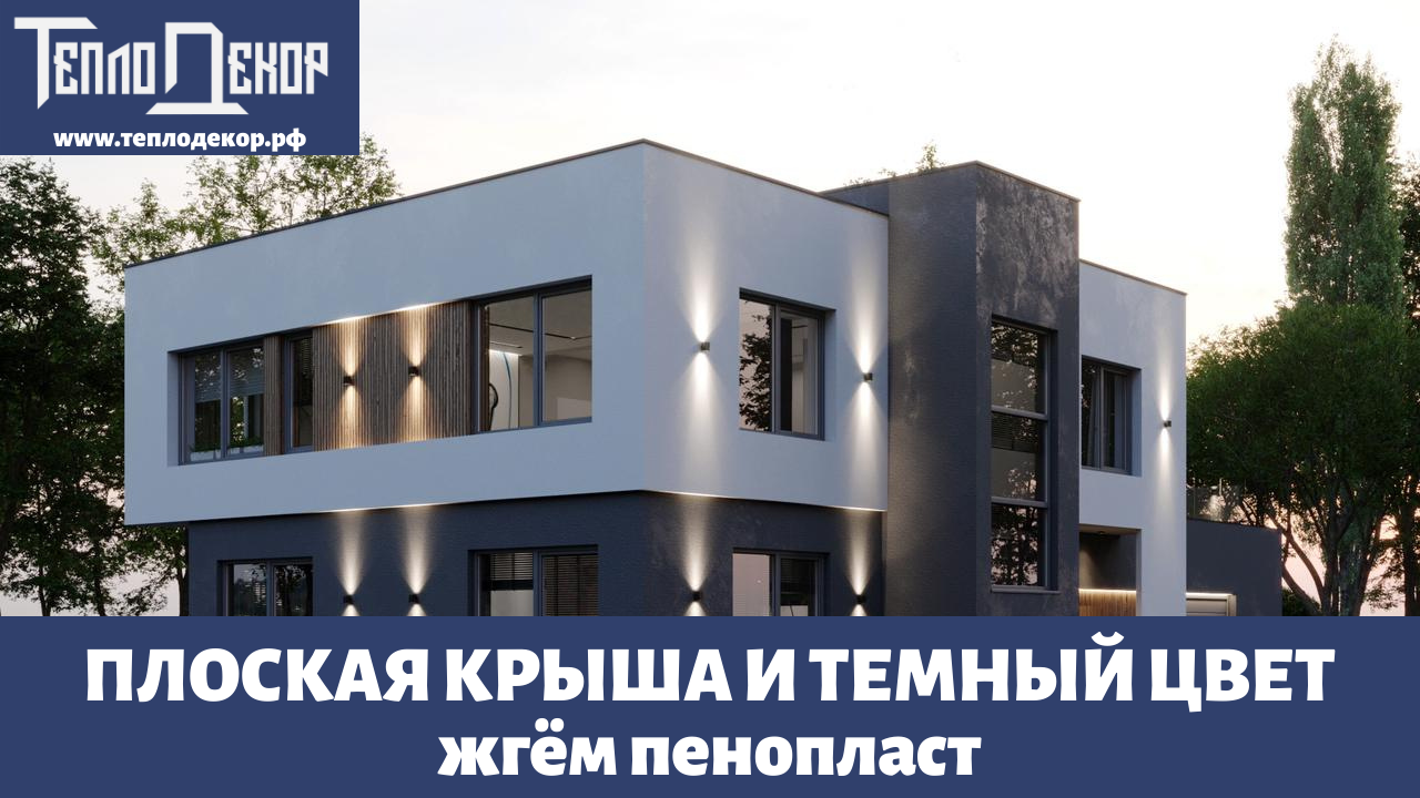 Серый и белый цвет фасада с плоской крышей.