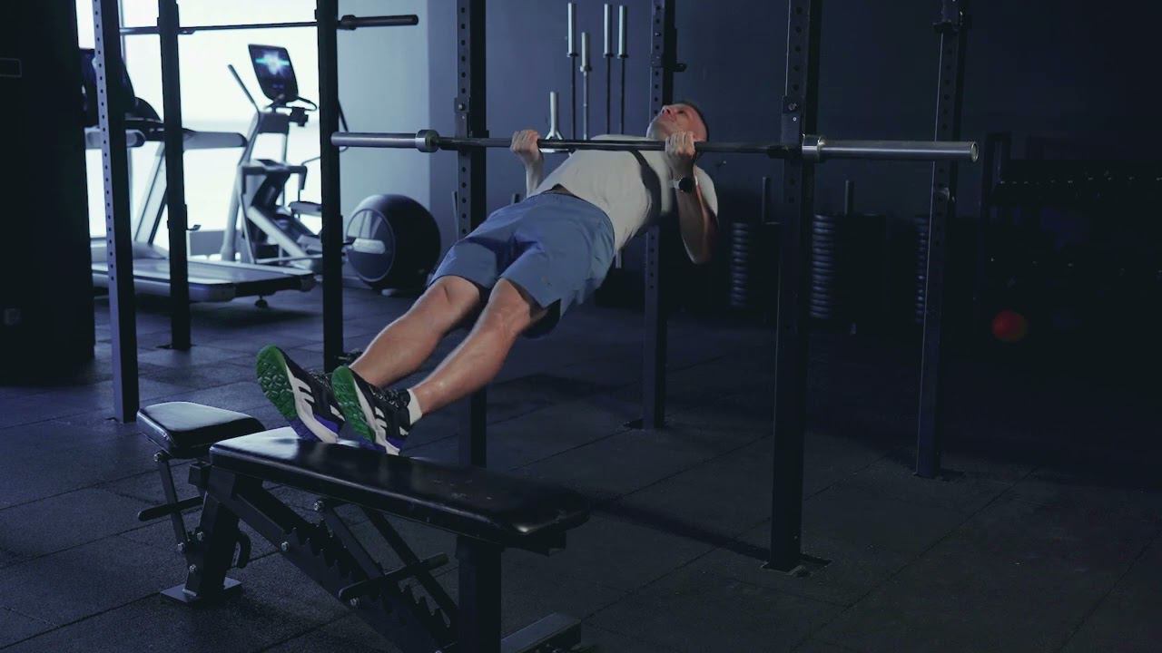 Австралийские подтягивания обратным хватом с ногами на возвышенности