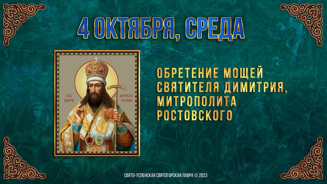 Обретение мощей свт Димитрия, митр. Ростовского. 04.10.2023 г. Православный мультимедийный календарь