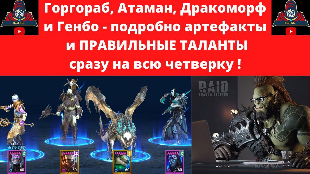 Артефакты и ЭФФЕКТИВНЫЕ ТАЛАНТЫ сразу на четверых героев : Горгораб, Атаман, Дракоморф и Генбо RAID