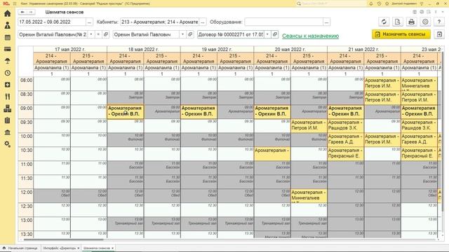 В релизе 22.03 появилась Шахматка сеансов, которая совмещает в себе функционал имеющихся Шахматок услуг и кабинетов и обладает рядом преимуществ: — Возможность видеть общую загруженность всех кабинетов — Возможность переносить сеансы между кабинетами — Возможность быстро выделять несколько сеансов для назначения https://kint.ru/ https://www.kint.ru/products/kus https://wiki.kint.ru/Шахматка_сеансов_(КУС)