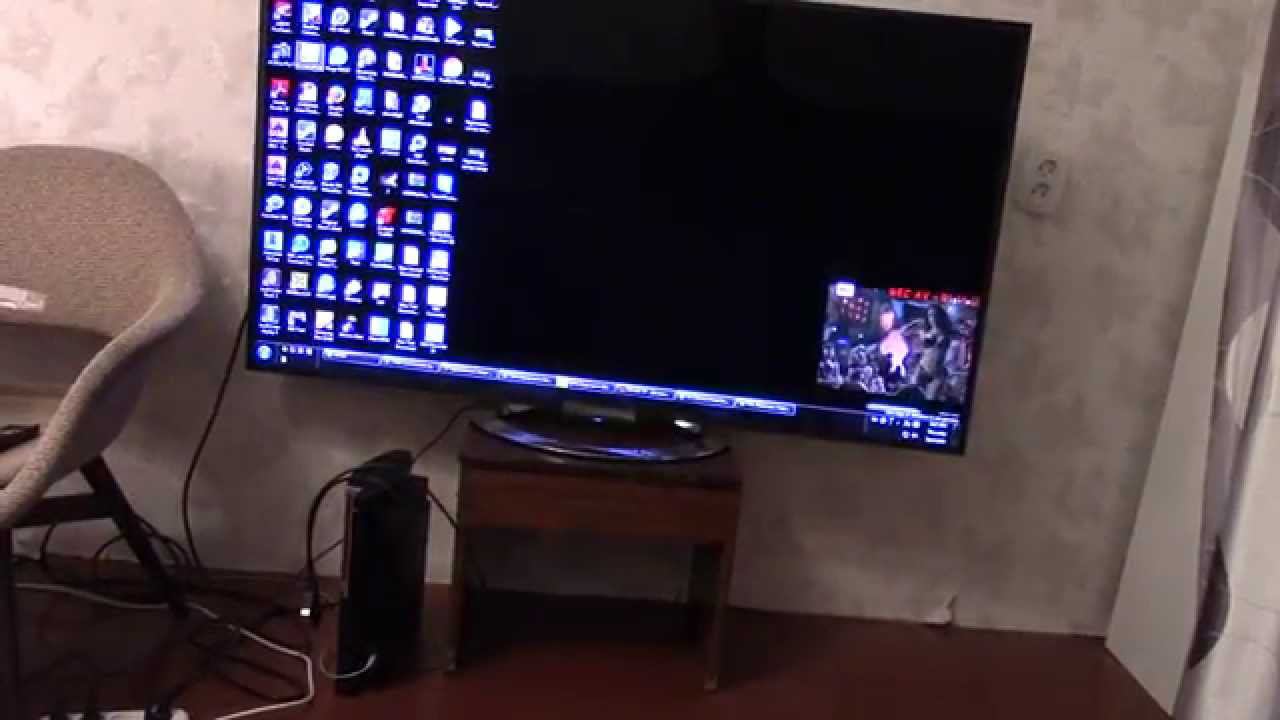 Домашний ПК с 55 дюймовым дисплеем и диваном