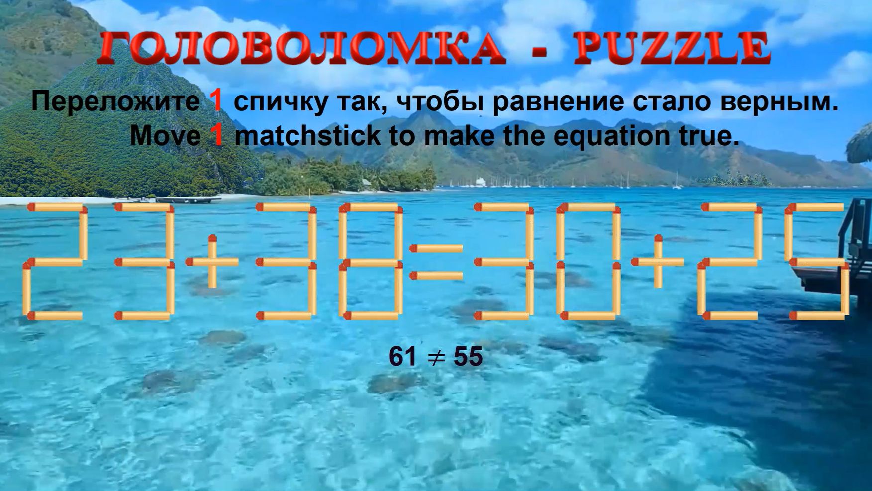 ГОЛОВОЛОМКА – PUZZLE. Спичка. 23+38≠30+25, 38+23≠23+35, 43+28≠30+33, 53+30≠50+29