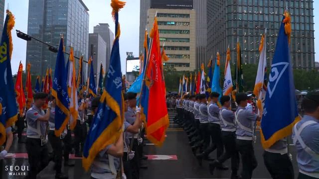 South Korea on Tuesday held a large-scale military parade on the streets of Seoul for the first time in ten years, to commemorate the 75th anniversary of Armed Forces Day. It was held in the main commercial and business district in Gwanghwamun. Over 4-thousand 6-hundred troops participated, with some 1-hundred 70 pieces of military equipment on display up close for the public for the very first time. Under the theme “A Strong Military, Robust Security and Peace through Strength," the grand parade was aimed at showing off the full might of South Korea's military, while sending a strong message to the enemy. It's the first time for the Army, Navy, Air Force, and Marine Corps to showcase their assets to the public in central Seoul at the same time. Key players leading the parade were South Korea's infantry fighting vehicle, the K21, the country's main battle tank, the K2 Black Panther,. and the K9 self-propelled howitzer. At the heart of the parade was South Korea's three-axis system,.. which ties together three military concepts, that counter North Korea’s growing nuclear and missile threats. One of the key weapons mobilized to highlight the system was, the country's homegrown long-range surface-to-air missile, designed to shoot down North Korea's ballistic missiles. The country's domestically developed ballistic missile, the Hyunmoo, was also revealed to the public for the very first time. The missile is known to have the ability to strike all areas of North Korea with very high precision. Surveillance drones were also deployed,. and the Navy's cutting-edge Aegis destroyer, Jeongjo the Great, took part through Augmented Reality. The landmark parade was, for the first time ever, joined by some 3-hundred U.S. combat troops based in the country. Their participation signified the 70th anniversary of the Seoul and Washington alliance. Filmed: Tuesday, September 26, 2023, 4:00PM KST Weather: Rainy ☔️ Temperature: 21℃ / 69℉