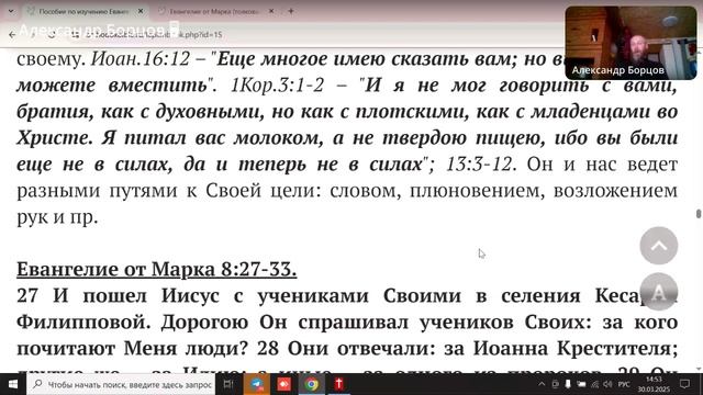 №37. Пособие по Евангелию от Мк. 8:22-26. Ведущий Александр Борцов. 30.03.2025.
