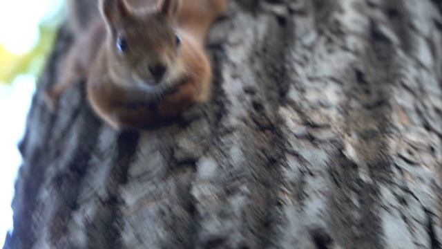 Собака охотится на белку