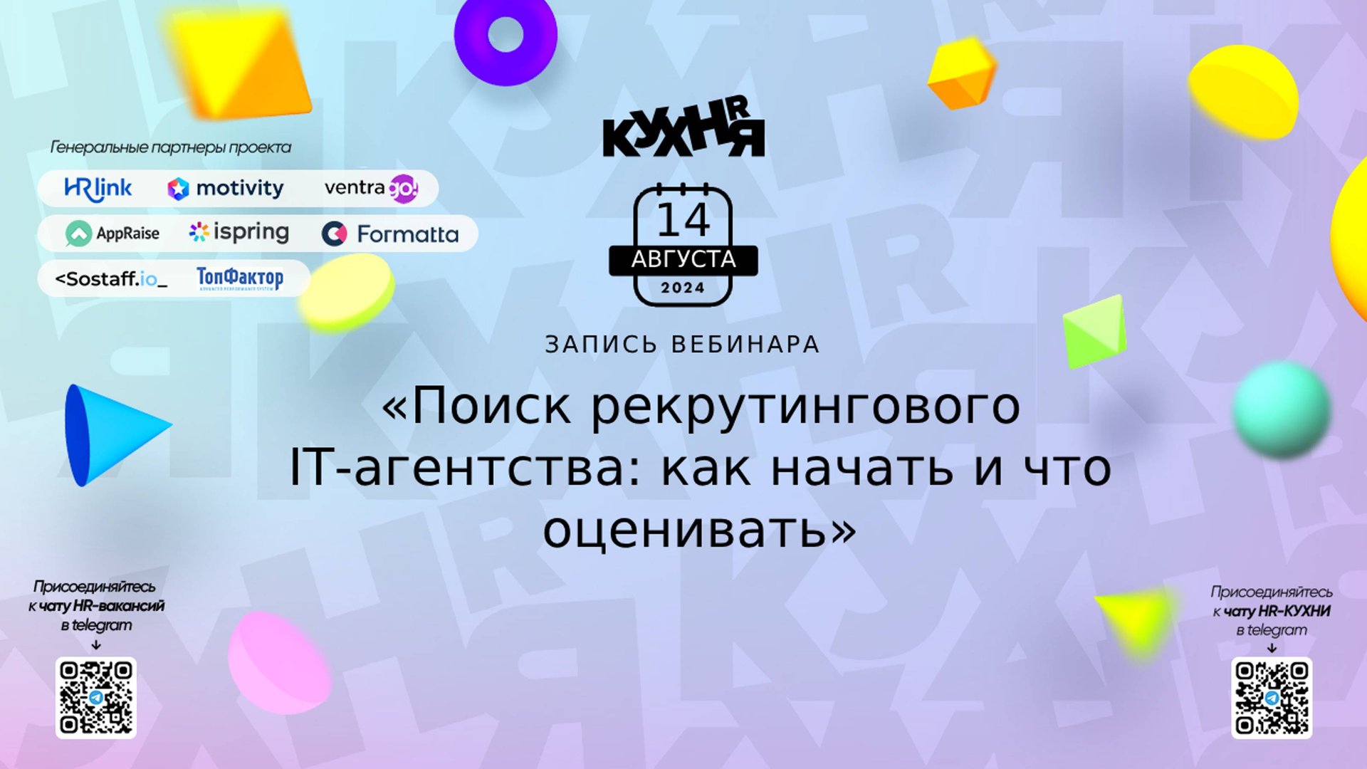 Spice IT — специализируемся на подборе IT-специалистов. Беремся за вакансии со сложными технологическими стеками. Находим и помогаем удерживать IT-специалистов, которые создают крутые продукты. 15 лет на рынке. Входим в топ-3 агентств, на которые приходится основная доля IT-вакансий. Нам доверяют поиск ведущие компании Рунета: 60% компаний из списка Forbes.Russia — клиенты Spice IT. Подробнее: https://hrkitchen.click/spiceagency Присоединяйтесь к чатам и каналам HR-КУХНИ в телеграм: - Основной чат HR-КУХНИ в телеграм - https://t.me/+tYgAH0PgPQVkOWIy - Канал HR вакансий в телеграм - https://t.me/+CMNAN2u1hjo3M2Ri - Канал HR-EVENTS в телеграм - https://t.me/hr_kitchen - Канал HR JOURNAL в телеграм - https://t.me/hrkitchenjournal Полезные ссылки: - Каталог HR решений - https://hrkitchen.ru/exhibition - График конференций, бесплатных вебинаров, а также бесплатные курсы – https://hrkitchen.ru/ - Стать спикером HR-КУХНИ - https://hrkitchen.ru/speakers - Подписаться на полезную e-mail рассылку от HR-КУХНИ (новости, гайды, чек-листы, подарки от партнеров) - https://hrkitchen.ru/subscribe