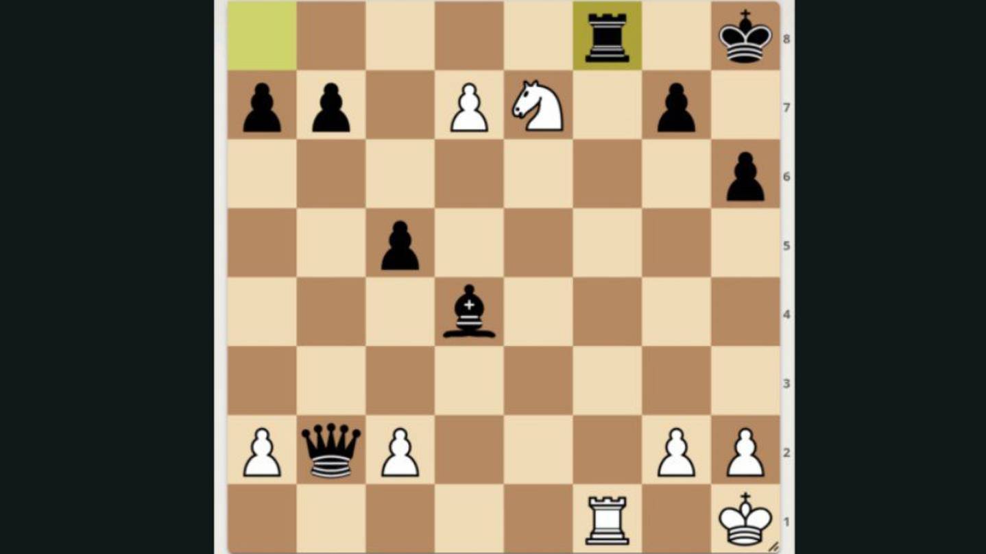 Мат в четыре хода. Выигрышная позиция. Найдите лучшее продолжение за белых. Белые начинают и выигрывают. Mate in four moves. Winning position. Find the best continuation for white. White to move and win. [Event "casual correspondence game"] [Site "https://lichess.org/N6doe5St"] [Date "2025.09.14"] [White "_"] [Black "lichess AI level 8"] [Result "1-0"] [GameId "N6doe5St"] [UTCDate "2025.09.14"] [UTCTime "18:36:48"] [WhiteElo "1500"] [BlackElo "?"] [Variant "From Position"] [TimeControl "-"] [ECO "?"] [Opening "?"] [Termination "Normal"] [FEN "5r1k/pp1PN1p1/7p/2p5/3b4/8/PqP3PP/5R1K w - - 0 27"] [SetUp "1"] [Annotator "lichess.org"] 27. Rxf8+ Kh7 28. Rh8+ Kxh8 29. d8=Q+ Kh7 30. Qg8# { White wins by checkmate. } 1-0