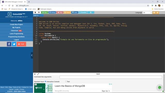 Compilador on-line onlinegdb