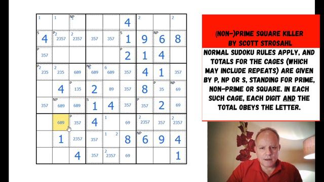 Try Scott Strosahl's unusual (Non-)Prime Square Killer Sudoku here: https://cracking-the-cryptic.web.app/sudoku/MNhtJ4GJ89 Normal sudoku rules apply. P is Prime, NP Non-Prime and S Square. Cages show the properties of the cage totals AND all the digits in the cage. ▶ OUR PATREON PAGE – JOIN THE COMMUNITY AND TRY OUR NEW PUZZLE HUNT◀ https://www.patreon.com/crackingthecryptic ▶ OUR SECOND SUDOKU PUZZLE HUNT – OUT NOW!◀ https://www.patreon.com/posts/our-new-sudoku-38675803 ▶ CTC FAN DISCORD SERVER◀ https://discord.gg/BbN89j5 ▶SUPPORT US + ACCESS EXCLUSIVE "CRACKING THE CRYPTIC" PUZZLES/VIDEOS◀ Patreon: https://www.patreon.com/crackingthecryptic ▶ OUR BACK CATALOGUE – ALL CATEGORISED WITH LINKS!◀ https://tinyurl.com/CTCCatalogue ▶ OUR NEW THERMO SUDOKU APP IS OUT!◀ AppStore: https://apps.apple.com/us/app/thermo-sudoku/id1513994223 Android: https://play.google.com/store/apps/details?id=com.StudioGoya.ThermoSudoku Steam: https://store.steampowered.com/app/1316390/Thermo_Sudoku/ ▶ *NEW* CRACKING THE CRYPTIC MERCHANDISE◀ https://teespring.com/stores/cracking-the-cryptic ▶ THE FIRST SUDOKU PUZZLE HUNT BY BEN NEEDHAM◀ https://www.patreon.com/posts/36694746 ▶ TRY OUR CHESS SUDOKU APP◀ AppStore: https://apps.apple.com/us/app/chess-sudoku/id1500654482?ls=1 Steam: https://store.steampowered.com/app/1250560/Chess_Sudoku/ Android: https://play.google.com/store/apps/details?id=com.StudioGoya.ChessSudoku&hl=en_US ▶TRY OUR CLASSIC SUDOKU APP◀ AppStore: https://apps.apple.com/us/app/classic-sudoku/id1488838275?ls=1 Steam: https://store.steampowered.com/app/1188330/Classic_Sudoku/ Android: https://play.google.com/store/apps/details?id=com.StudioGoya.ClassicSudoku&hl=en_US ▶TRY OUR SANDWICH SUDOKU APP◀ AppStore: https://apps.apple.com/us/app/sandwich-sudoku/id1476116705?ls=1 Steam: https://store.steampowered.com/app/1117310/Sandwich_Sudoku/ Android: https://play.google.com/store/apps/details?id=com.StudioGoya.SandwichSudoku ▶SEND US PUZZLES TO SOLVE/CONTACT US◀ crackingthecryptic@gmail.com ▶FOLLOW US◀ Twitter: #crypticcracking @crypticcracking Instagram (for how to solve daily clues from The Times): https://www.instagram.com/crackingthecryptic/?hl=en ▶SOFTWARE◀ Play the puzzle in the video by clicking the link under the video (above). We are building a website which will allow you to enter your own sudoku puzzles into the software and this is coming soon! ▶Logo Design◀ Melvyn Mainini ▶Opening Credits Design◀ Joel Blundell ▶ABOUT US◀ Hi! We're Simon Anthony and Mark Goodliffe, two of the UK's most enthusiastic puzzle solvers. We have both represented the UK at the World Sudoku Championships and the World Puzzle Championships. We're also "cryptic crossword" aficionados. Mark is the twelve-time winner of The Times championship and Simon is the former record holder for most consecutive correct solutions to The Listener crossword. We hope we can help your puzzle solving while also introducing you to some of the world's best puzzles. Thank you for watching! Simon and Mark