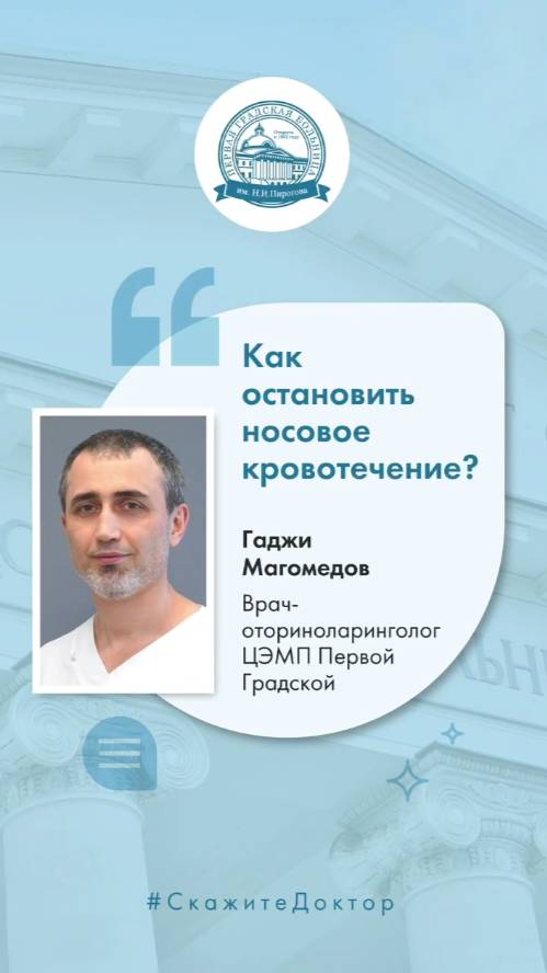 🩺➕ Гипертонический криз, травма, проблемы с сосудами... Кровотечение из носа может вызвать масса причин. ❓ В каких случаях они опасны и нужно вызывать Скорую? А когда остановить кровь можно самостоятельно? И главное – как это делать правильно? 👨⚕Об этом в нашей постоянной рубрике #СкажитеДоктор рассказывает врач-оториноларинголог Центра экстренной медицинской помощи Первой Градской Гаджи Муртазалиевич Магомедов.