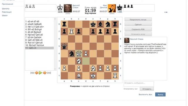 #4 партия в шахматы с Максом Даниловым рейтинг 1305
