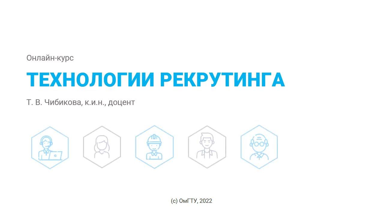 Онлайн-курс #ОмГТУ «Технологии рекрутинга» на #stepik: https://stepik.org/course/109813/ Автор: Чибикова Т.В., кандидат исторических наук, доцент