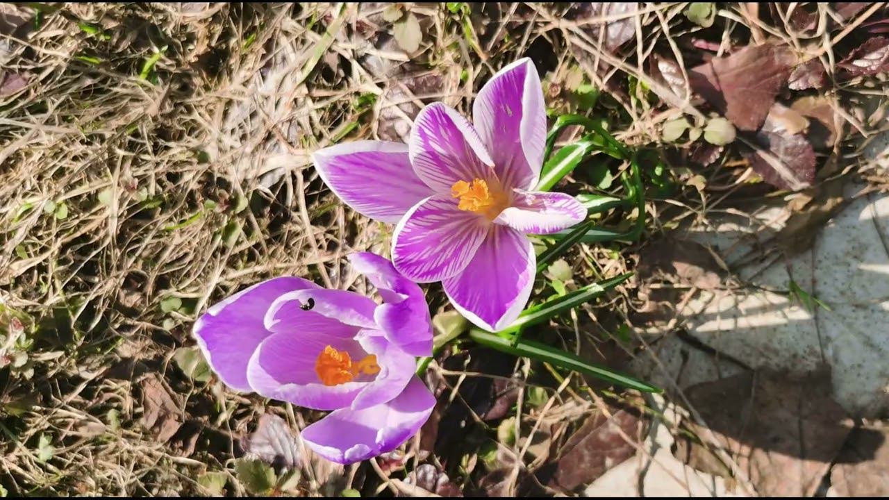 С утра был дождь, вчера пасмурно. С полудня, как вышло солнышко, крокусы раскрылись. Птички запели, дятел застучал, ящерки забегали.