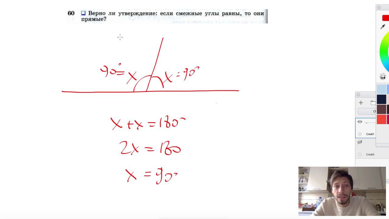 №60. Верно ли утверждение: если смежные углы равны, то они прямые? Мой второй канал для подготовки к ЕГЭ и ОГЭ - https://www.youtube.com/ЕвгенийСумин Инстаграм - https://www.instagram.com/EGE_OGE.math Личный инстаграм - https://www.instagram.com/ee_sumin VK - https://vk.com/evgeniysumin FB - https://www.facebook.com/EvgeniySumin