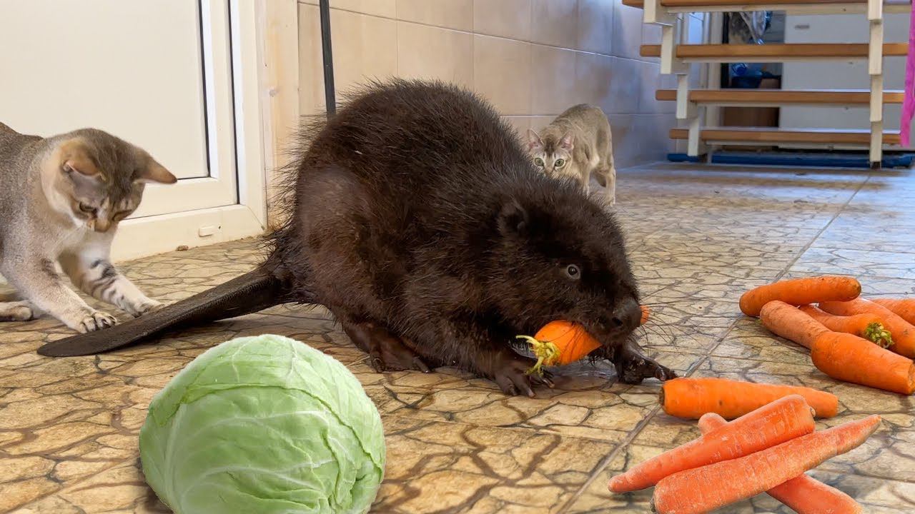 БОБР ПОПАЛ НА СКЛАД ОВОЩЕЙ ! / Барханная кошка в восторге от моркови