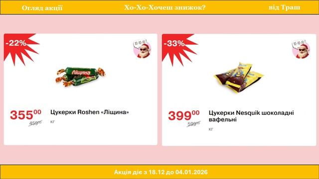 🎄Акції у Траш з 18.12 по 04.01.2026! У цьому відео ви побачите Акцію 🎅ХО-ХО-ХОЧЕШ ПОДАРУНКІВ І ЗНИЖОК?🎁, актуальні знижки та найвигідніші пропозиції Траш, які допоможуть зекономити на щоденних покупках. Зібрав для вас тільки найкраще — дивіться та обирайте вигідно! 🛒 Що у відео: • Товар тижня у Траш • Головні акційні пропозиції • Найнижчі ціни цього тижня • Огляд знижок у категоріях: продукти, напої, побутові товари 📅 Акція діє: з 18.12 по 04.01.2026 00:00 Початок 00:18 М'ясо, риба, птиця 01:00 М'ясо-ковбасні вироби 02:35 Молочні продукти та сири 04:42 Бакалія, консерви, соуси, приправи Хліб та хлібобулочні вироби 08:55 Кава, чай 09:06 Снеки 10:09 Солодощі 15:43 Напої 16:40 Гігієна 16:50 Для дому 17:35 Міцні напої Інформація взята з офіційного сайту Траш 🔔 Підписуйтесь на канал “Акції Сьогодні”, щоб не пропускати нові акції та знижки! #сільпо #акціїатб #знижки #знижкиатб #цінинапродукти #знижки #акції #цінотижики #варус #акціїтраш #атб #траш #варусакции #цінинапродукти
