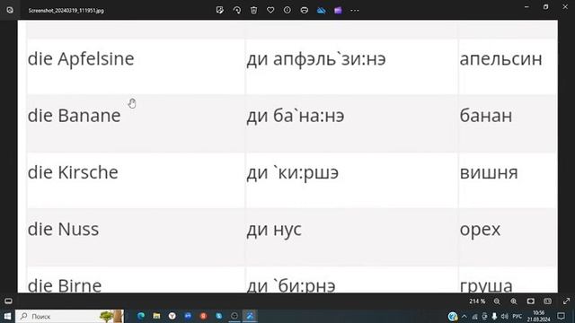Немецкий язык, продукты питания