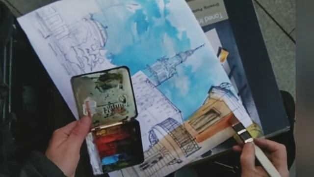 Акварельная зарисовка Москва Пленэр UrbanSketch Watercolor archisketch draw graphics 07.11.2021
