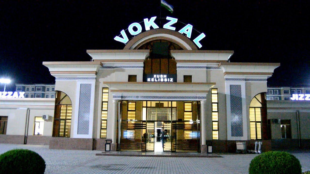 Вокзал станции Джизак ночью