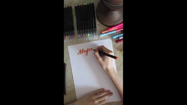 Пишу брашпеном каллиграфию "Август"