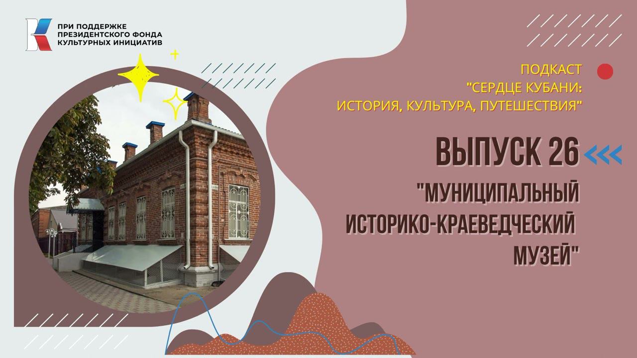 В двадцать шестой серии подкаста «Сердце Кубани: история, культура, путешествия» специальный гость — научный сотрудник историко-краеведческого музея Усть-Лабинского район Юналан Зульфира Мирзануровна расскажет о месте, где собрана хроника не одного тысячелетия, — об историко-краеведческом музее. Проект реализуется при поддержке Президентского фонда культурных инициатив. Если вам понравился наш подкаст, пожалуйста, оцените нас в социальных сетях и на сайте Центральной районной библиотеки. И обязательно вернитесь завтра для путешествия в сердце Кубани! #местосилы #музей #кубань #кубаньтерриторияединства