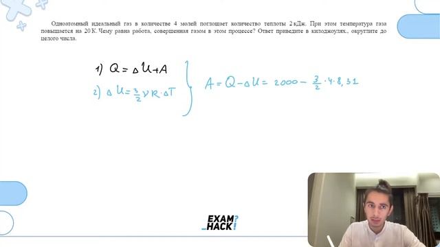 Одноатомный идеальный газ в количестве 4 молей поглощает количество теплоты 2 кДж - №29996