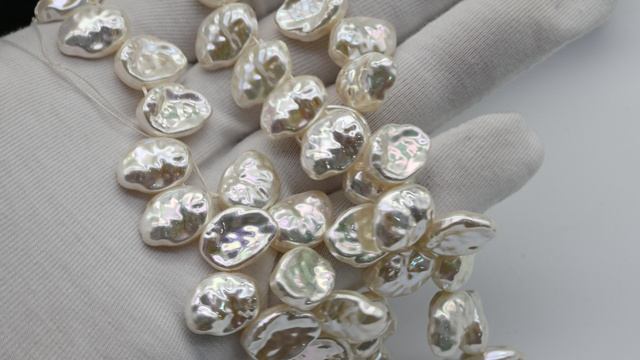 Цена за нитку. Имитация жемчуга барокко. Количество бусин 38 +/-1шт. Размер бусины 15*11мм +/-1мм. Цена: 1 130 руб. https://radugakamnya.ru/catalog/businy_iz_kamnya/businy_iz_mayorki_oblepikha_15_11mm_tsv_belyy_khameleon_38sm_38_busin-457296/