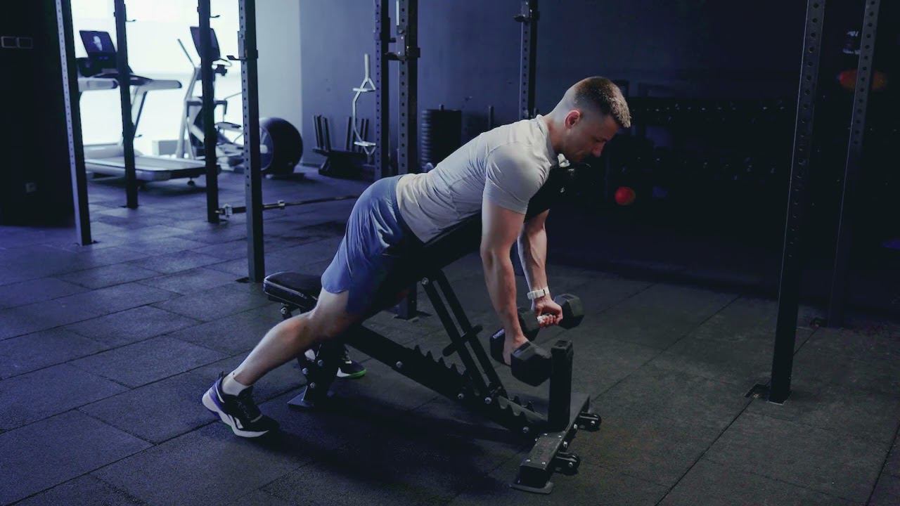 Тяга гантелей на наклонной скамье супинированным хватом/ Supinated DB incline row