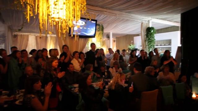 Свадебный танец с проекцией изображения на молодоженов.