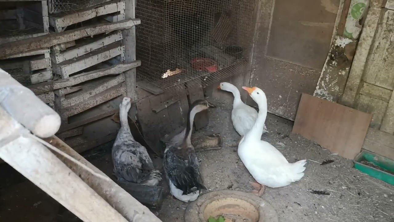 ГУСИ молодняк подсадил к взрослым