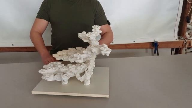 Декорация фронтальная, размером 50 х 35 х 33 см. По изделию выполнено большое количество отверстий под ножку плашки, плашками не комплектуется. Изделие отлично подходит для средних аквариумов и как дополнение к уже существующему скейпу в больших, а так же как элемент комплекта из нескольких декораци