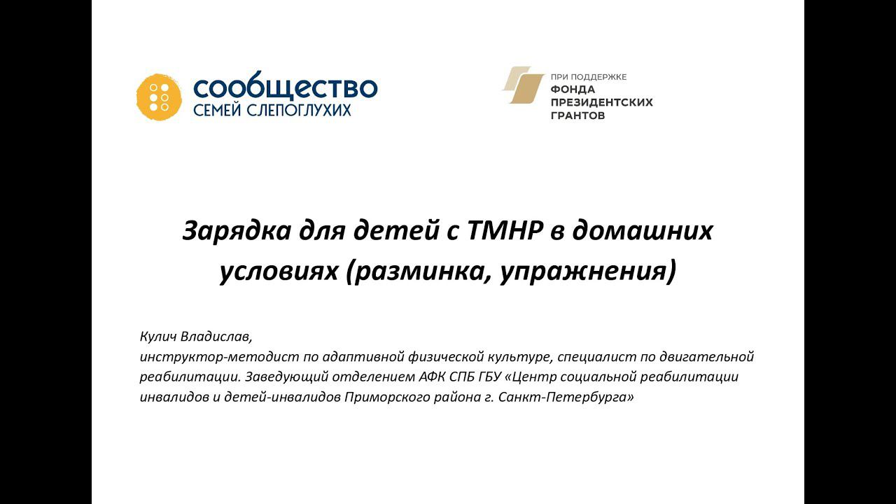 Зарядка для детей с ТМНР в домашних условиях ( разминка, упражнения)
