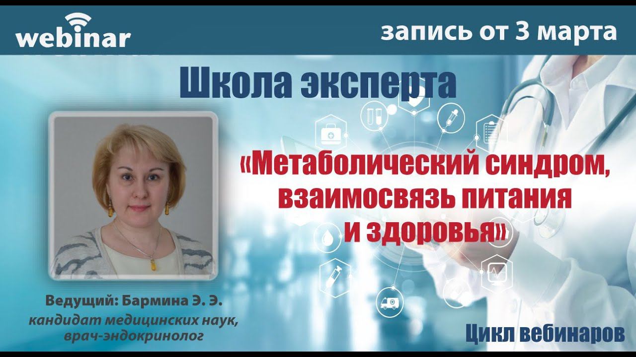 Метаболический синдром, взаимосвязь питания и здоровья. Вебинар проводит Бармина Элеана Эмильевна, кандидат медицинских наук, врач-эндокринолог.