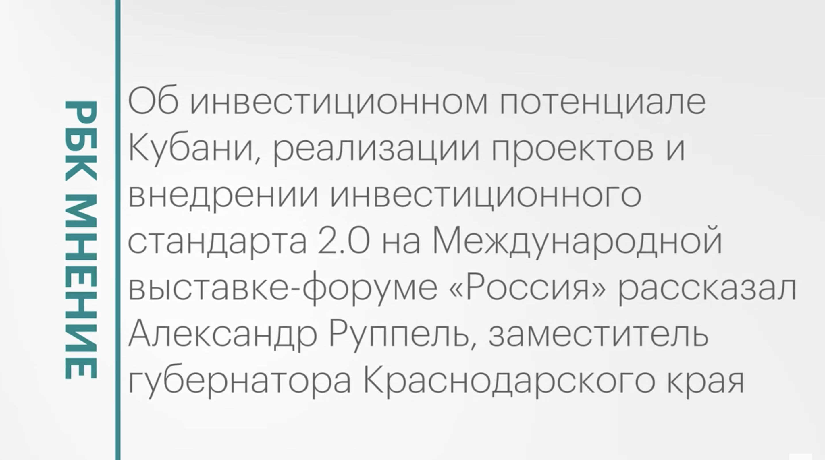 Инвестиционные проекты и потенциал Кубани в данном направлении || РБК Мнение