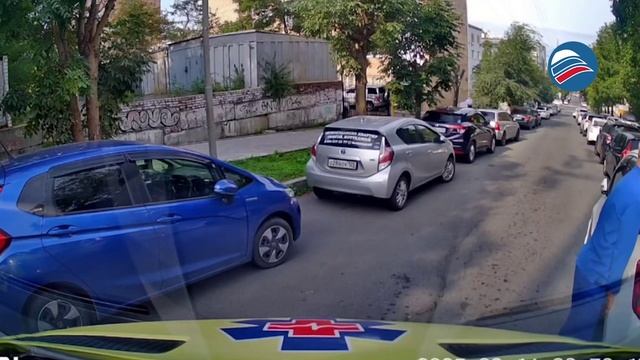 Реанимобиль и мешающая машина: приморские врачи убрали авто с дороги голыми руками