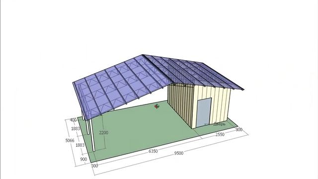 8879 Двухскатный навес с хозблоком