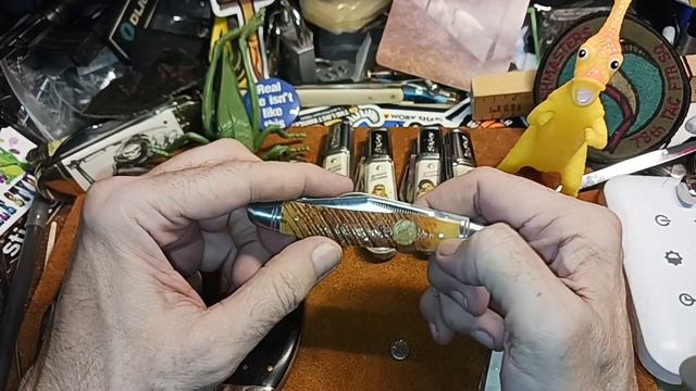 (852) Queen Sawcut Bone Stockman, 2 older Pen knives, & a Bombshell Barlow