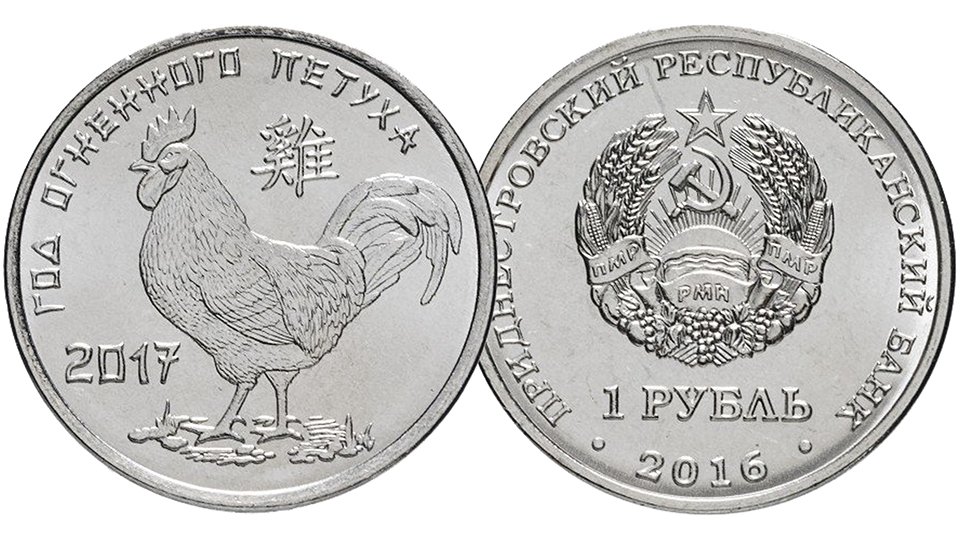 Монета 1 рубль Приднестровья Год огненого петуха выпуска 2016 года.